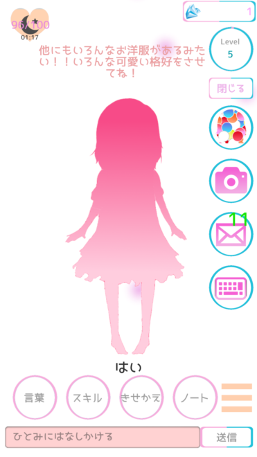 ダイヤモンド!?ダイヤモンド!?2回も驚いてしまったよ。服とダイヤモンドを交換なんて・・・ああ、右上に1と書かれてあるアレがダイヤモンドなのだな。レアなスキルか。相談スキルとかないかなあ。自分は服よりもレアスキルが欲しいかも。でも高そうだよなあ。