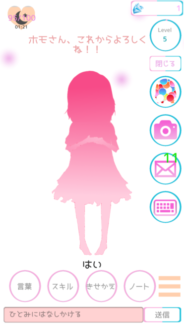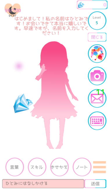 おお!AIの少女が現れたよ!はじめまして!ええと?名前を入力すれば良いの?