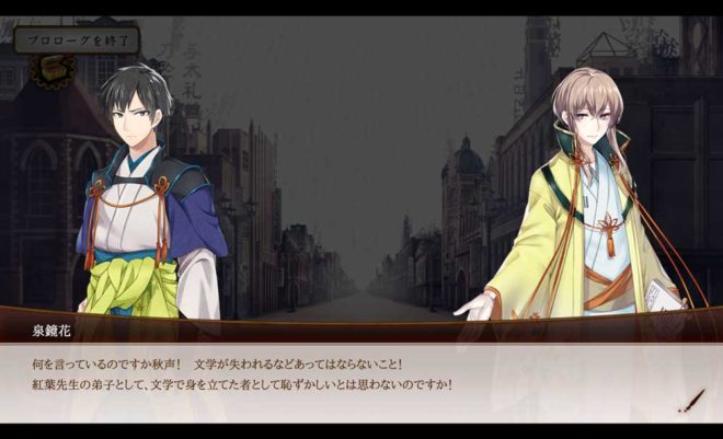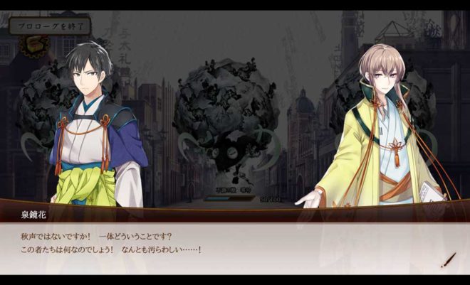 鏡花が秋声を叱責します。『紅葉先生』という名前が出てきましたが2人は知り合いなのかな?史実における師弟関係や交友関係、逸話がキャラクターのイベントに反映されるのか。これは面白いですよね。神ゲーと呼ばれるのも分かります。