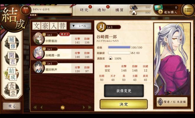 谷崎くんは強いなあ。豪華な素材を使っただけある。長く付き合っていきたい文豪だよ。しかし、秋声、中野くん、谷崎くんではガチムチ成分が足りない。夢100の白葉と出会った時を思い出す。ノンケ大勝利のチームになってしまった。