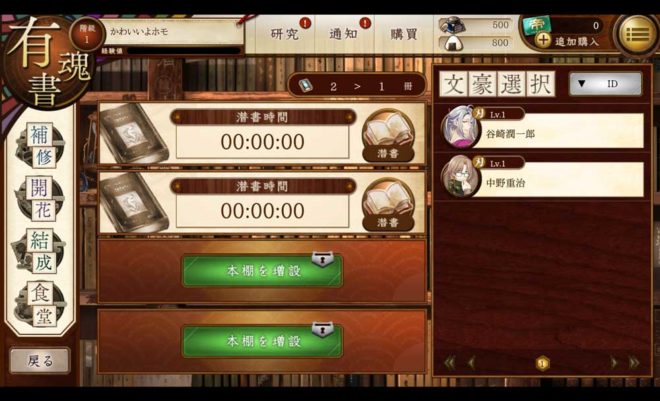 豪華な素材を使ったから強い文豪が誕生するに違いない。さっそく有魂書を見に行きましょう。