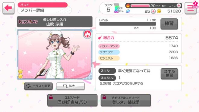 2人の山吹さんは能力の得意分野やスキルが違う。当然ながらエピソードも異なるから新たに山吹さんのエピソードを4つ読めるようになったわけです。たとえレア2だとしても全員のメンバーを全種類集めたくなりますよね。メインストーリーやバンドストーリー以外にもキャラエピソードが用意されているなんて豪華だよなあ。衣装を手に入れられたりもするみたい。