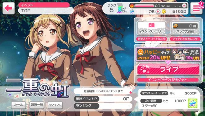 バンドリには期間限定のイベントがあります。僕は攻略wikiを見ていないから詳しい解説はできません。ざっと画面をみたところライブを繰り返して報酬を獲得していくみたいですね。タイプやメンバーによって獲得ポイントが変動したりするのか。