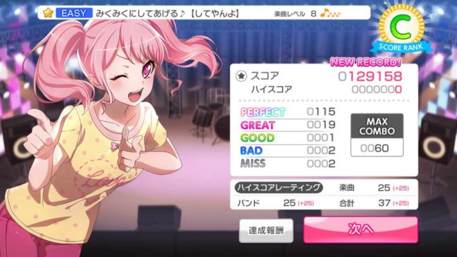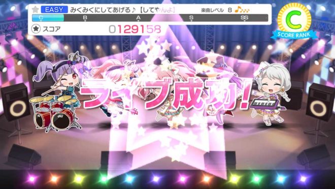 よっし!ライブを成功させたぞ!微妙にキャプチャのタイミングがずれており星が眩しすぎる!さてさて、結果はどうなった?
