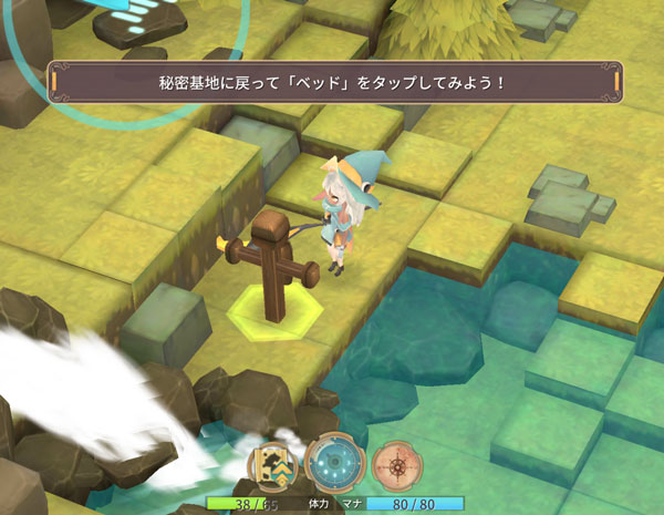 ベッドをしろと指示が出ました。これで1日目のチュートリアルは終了になるのかな。魔法を合成していないけど、すでに所有しているんだろうね。