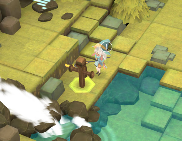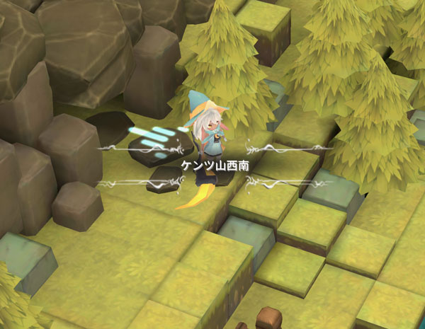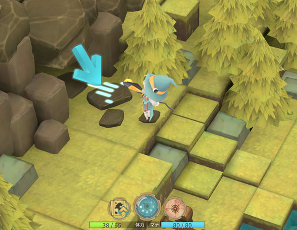 矢印に導かれてぶん殴れそうな木へ移動をします。近くにある滝の勢いが凄い。川の水が綺麗だなあ。