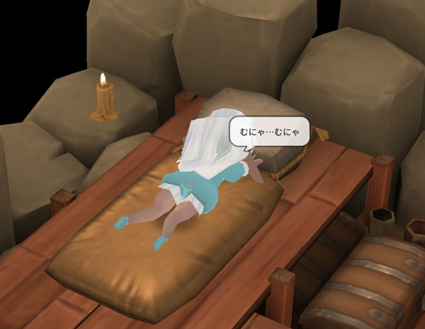 次は睡眠のチュートリアルになるのかな。木叩きを終えてルナが疲れちゃったようです。飯を食って好きなことをやって寝る。ルナは毎日をエンジョイしていますね。