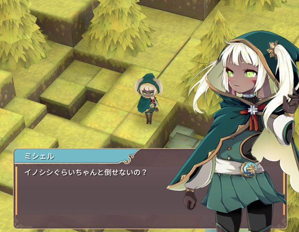 楽しいイベント会話の後、イノシシと戦闘開始。ミシェルも一緒に戦ってくれます!今回のイベントはルナのリアクションが面白かったな。チュートリアル後のイベントはガンガンカットするのでミシェルが気になる方はゲームを買ってみてください。現在は画像を貼りすぎている。