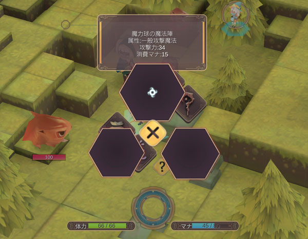 こんにちは!魔女の泉2のプレイ日記を始めます!木ゴーレムを倒して『三球炎柱の魔法陣』の素材が揃いました!これで魔法を作れることが出来ます!喜んだのもつかの間、野生のイノシシと遭遇をする。ルナの目が諦めていますね。