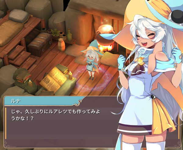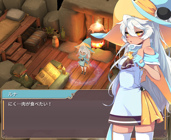 ルナが肉を食べようと決意したようです。腹ペコキャラは可愛いよね。ルナは男の子のプレイヤーから人気があるに違いない。もこっちみたいな顔をしているし。