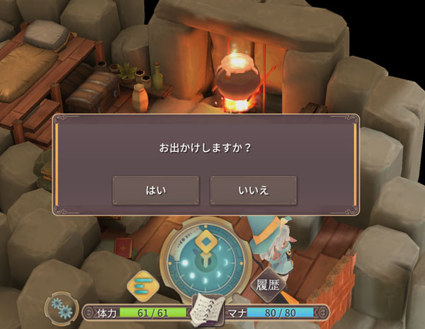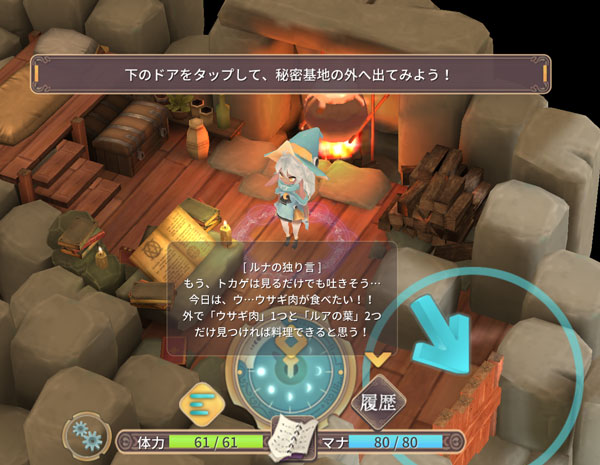 矢印に指定された扉をタップすると外へ出るか選択肢が出ました。秘密基地を上手く利用するには覚えることが沢山ありそうだなあ。その辺の箱を押したらアイテムを整理できたりするかも。