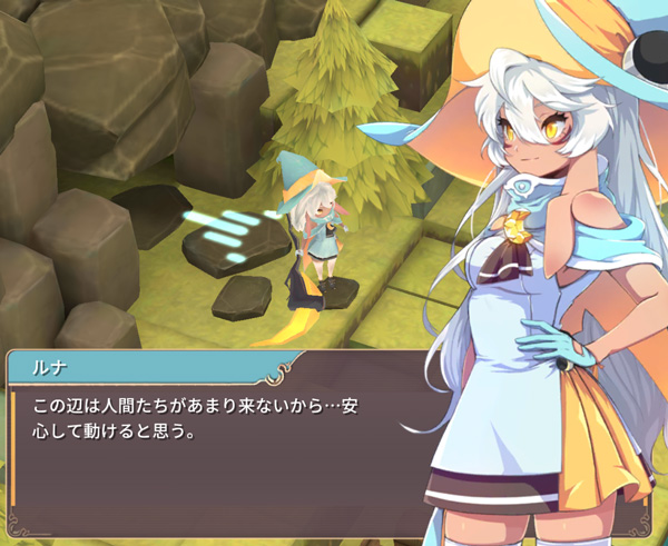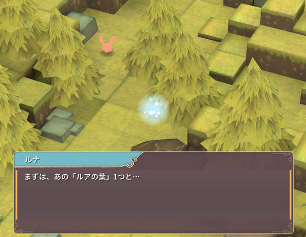 ルナが葉っぱを拾えと独り言を喋りだしました。アイテムを採取するチュートリアルのようです。パイベリーの時も最初はそうだったよね。