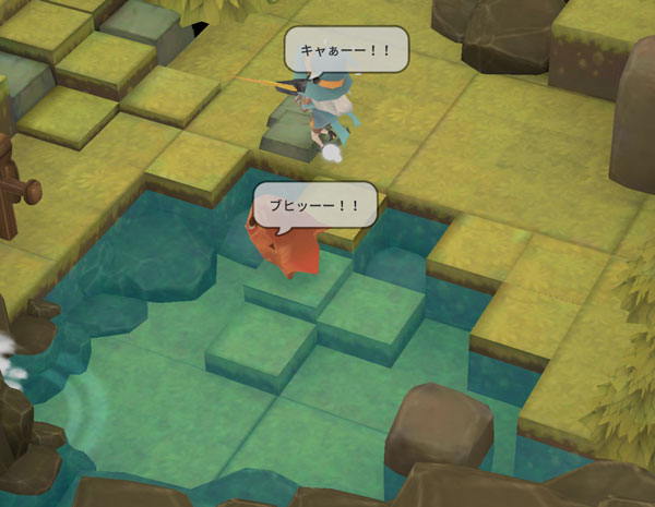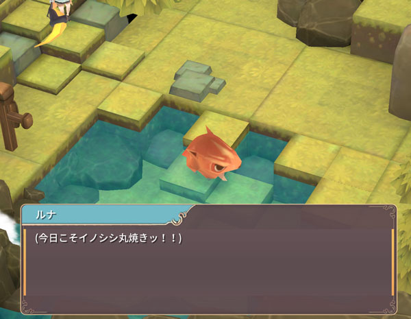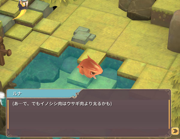 ルナがイノシシにコッソリと近づきます。戦闘をするんじゃないのか?不意打ちをしてアイテムだけゲットするパターン?