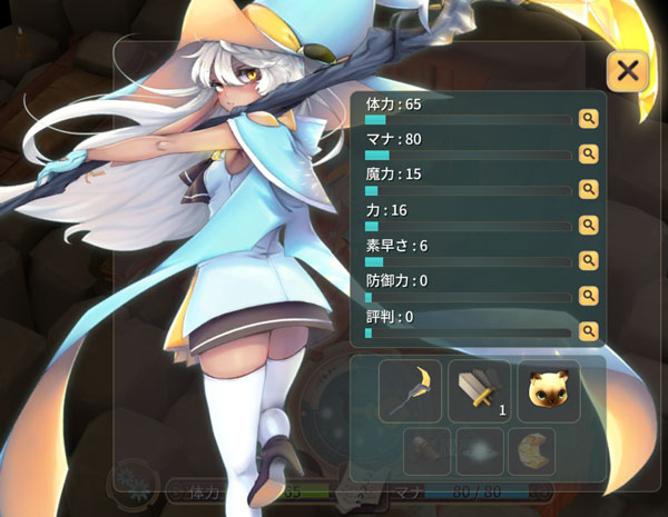 現在の能力値を確認することが可能になりました。杖や剣のアイコンは何を意味するんだろう。すみません、タップするのを忘れました。
