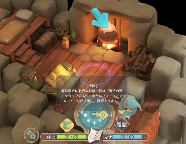 魔法調合に必要な素材は『魔法の壺』をタップすれば確認できるらしい。これは前作と同じだよね。フィールドのメニューでも可能ってのは便利になったな。
