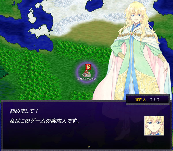 おっと?『ラインハルト・フォン・ローエングラム』みたいなイケメンが登場をした。ゲームの案内人と名乗っていますが正体はアグネスでしょう。いやあ、麗しい姿だ。戦闘も強いのかな?