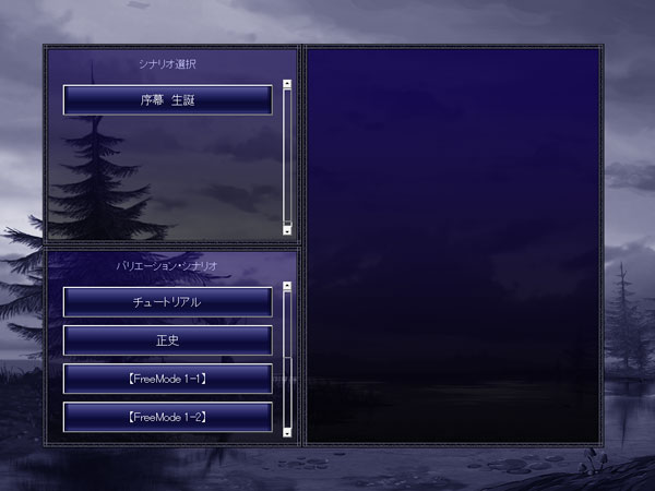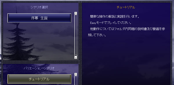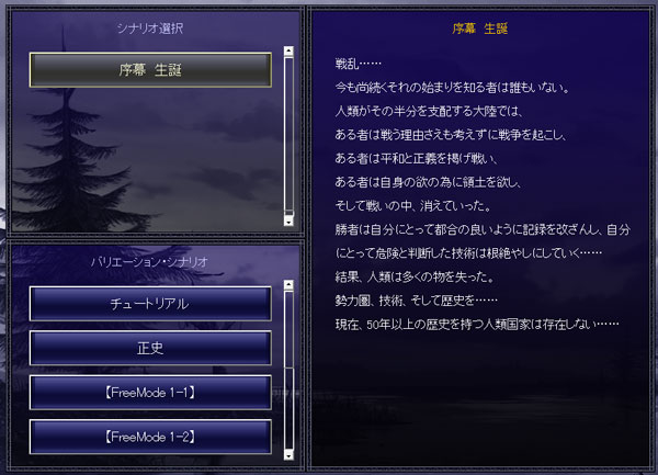 最初は5つのシナリオを選択できます。プレイをしていくにつれて徐々に増えていくのでしょう。何を選択しようか。『序章』ってのが気になるな。