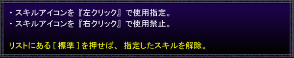 チュートリアルだけだと細かい設定等は説明されません。スキルアイコンを左クリックで使用、右クリックで使用禁止、これだけ覚えるのが今回のチュートリアル。