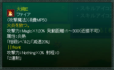 攻撃力、射程、属性が記載をされていますね。『相殺レベル2』というのはスキル特性です。マニュアルを参考にしてください。frontは前方に放つスキルという意味だろう。