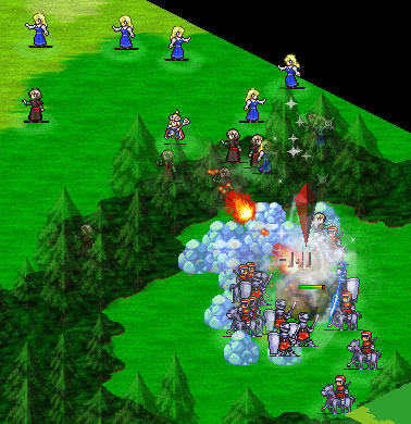 騎兵隊が岩に攻撃を始めました。これは岩に向かって『攻撃』というスキルを使用している状況なのだろうか。(だいたい当たってた)。