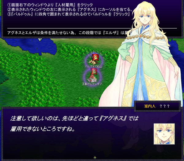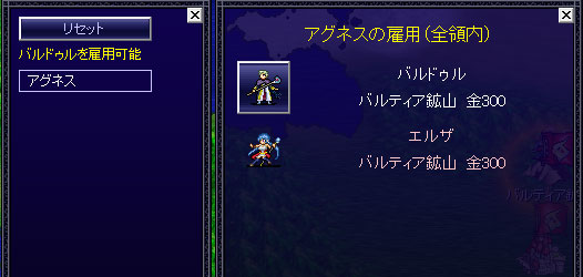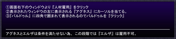 アグネスにカーソルをあてるとバルドゥルを雇用可能と表示をされました。バルドゥルを選択します。