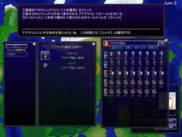 実際に人材を雇ってみます。雇用コマンドを実行するのは『アグネス』、雇用するユニットは『バルドゥル』です。