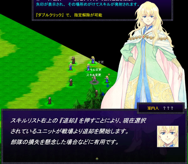 スキルリストの右上にある『退却』ボタンを押すことでユニットの退却が可能になります。負け戦の被害を最小限に抑えたいときの撤退であります。