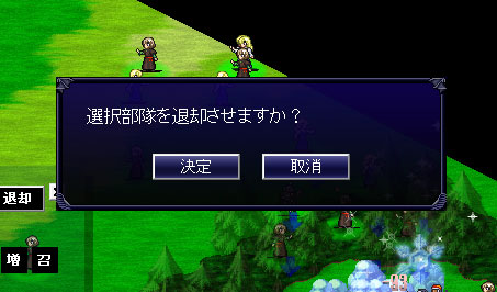 適等に部隊を選択して『退却』ボタンを押しましょう。部隊を退却させるか選択肢が表示されました。決定を選択します。