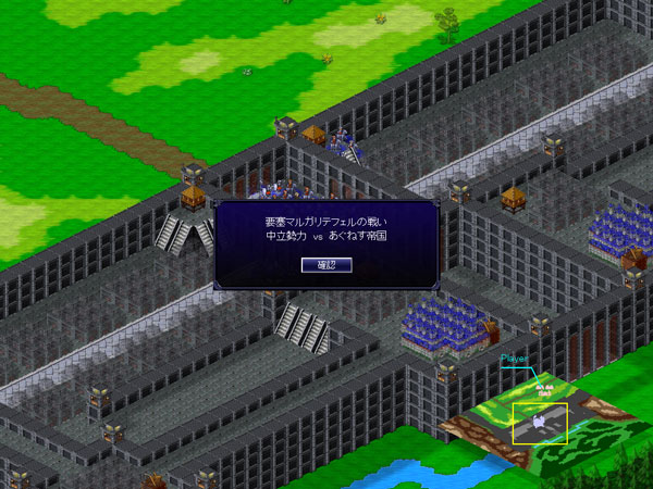 実際の戦場マップは上の画像。敵は要塞に籠もったまま動かないだろう。力押しの戦いになりそうだな。