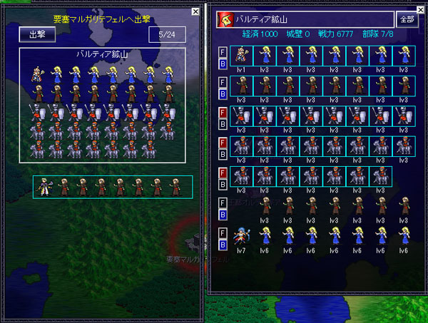 実際のゲーム画面は上の画像みたいな感じ。全てのユニットを出撃状態にしました。
