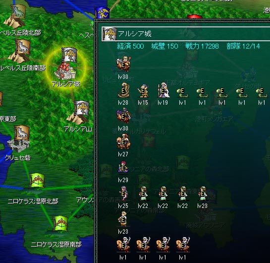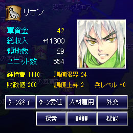リオンの領地と接している敵対都市は3つだけです。今は防衛が万全だけど人材ユニットが足りなくなったら動けなくなる。