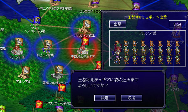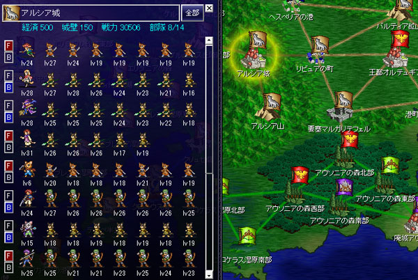 アルシア城にいるユニットを全て進攻させるのはマズい。人件費が高額になるからだ。最小限のユニットになるよう頭を使おうぜ。