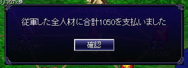 今回の人件費は1050円だ。やっぱり大都市へ攻め込むと金がかかります。全軍で攻め込んでいたら軍資金がマイナスになっていたかもな。