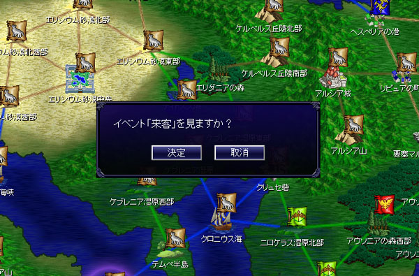 ここでイベント「来客」が始まりました。破竹の勢いで領土を広げるリオンに訪問者が現れたのかな?次回はイベントを見ます!