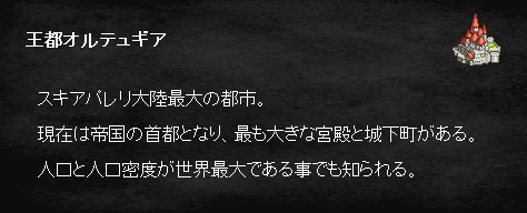 ちなみに王都オルテュギアの説明文は上の画像になります。世界最大の人口が世界最大の大都市なんだって。