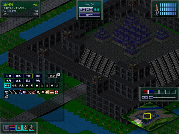 お池にかかっている橋が細いですね。何体かのユニットが水地形に足をとられています。いま襲撃されたらわりとピンチだと思う。