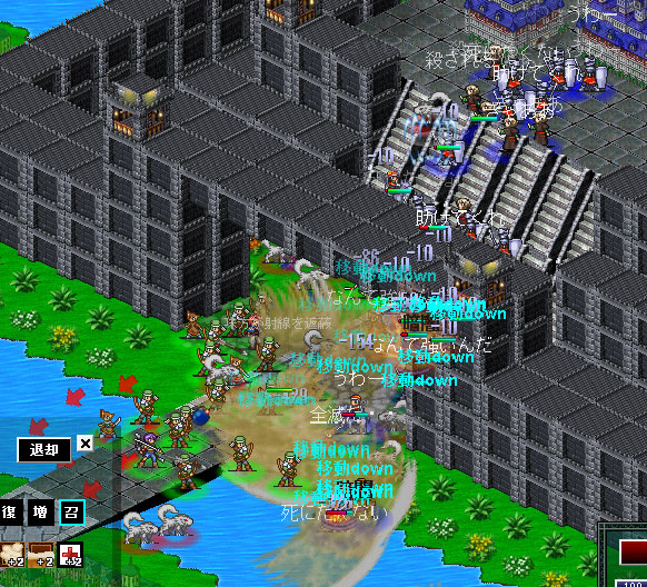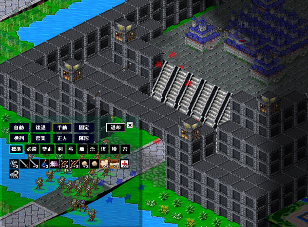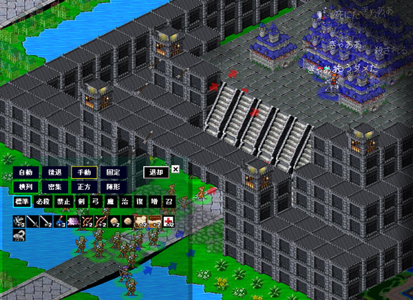 なんと一戦も交える前に敵は退却を決断したようです。恐慌状態のユニットがなだれ込んできた!階段を走ると危ないって!無抵抗な敵は逃がしてあげてください!
