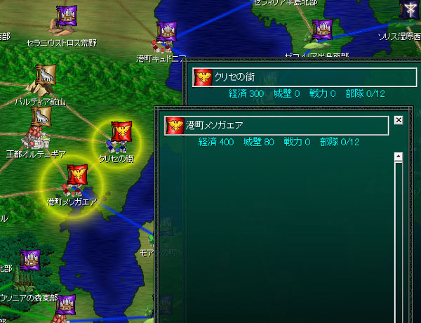 クリセの街にもケモミミを送ります。この都市を占領すれば収入は600も増える。中原の都市は出力が凄いなあ。