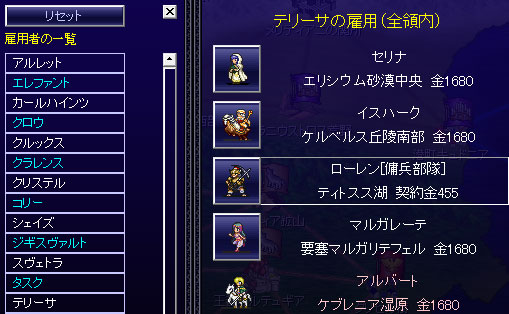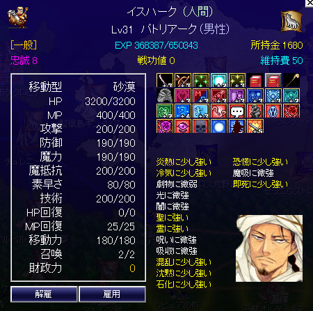クーニッツ騎士団のテリーサは人脈が広い。彼女の加入によりカストゥス教団が雇用可能になります。とりあえずマスターのイスハークを雇用しておこう。