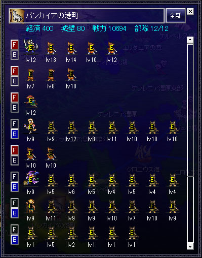 現在の戦力を確認してみよう。本拠地には戦力10000のユニットがいます。生き残っているユニットはこれだけなのかな。