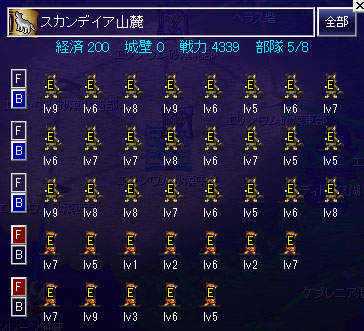 スカンディア山麓にもユニットがおりました。地術師が多く野犬兵は少ない。地術師の魔法はダメージが少ないから大勢いても頼りないんだよなあ。