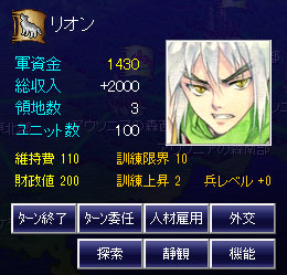 収入は2000まで増えました。全員が行動済みでユニットの雇用はできない。ターンを終了させましょう。