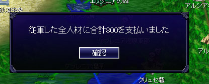 戦闘後に給料を払いました。800もお金が減ったのか。結構痛い出費ですね。