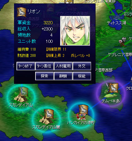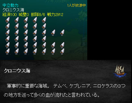 4ターン目はクロニウス海へ攻め込もうかな。地図を見て分かるとおり重要な軍事拠点だ。リザードマンはサッサと滅ぼしてしまおうぜ。