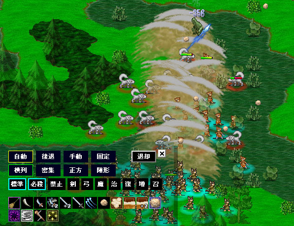 なるべく兵は失いたくない。召喚と必殺をオンにしましょう。どうやらリオンは召喚が得意なようです(たぶん)。