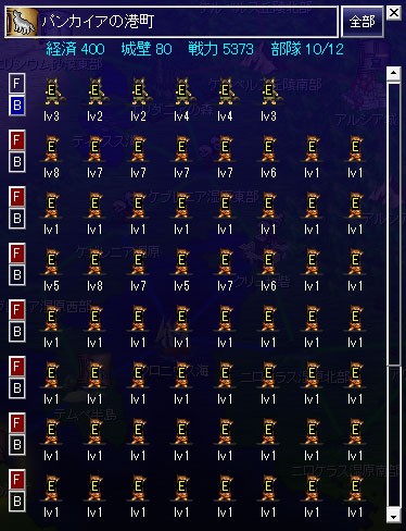 バンカイアの港町をひたすら野犬兵で埋めました。こいつらを訓練で強くして戦力を蓄える作戦。何名かテムぺ半島に移動させた。