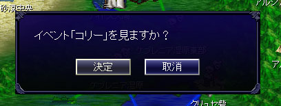 あれ?イベントを見るか選択肢が出ました。何かフラグがあったのかな。イベント名は「コリー」です。見てみましょう。