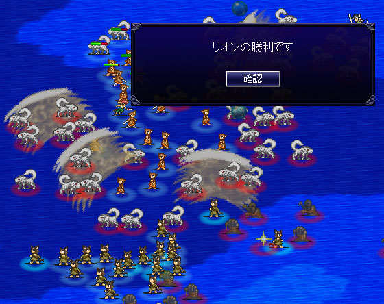 イカを全滅させて勝利しました。まあ中立勢力を相手に戦うのは楽ですよ。問題はマスターのいる勢力との戦だ。たぶん次はリザードマンと戦うことになる。
