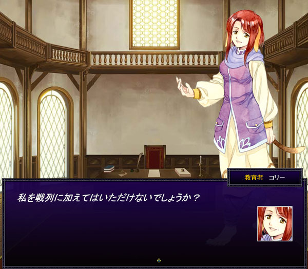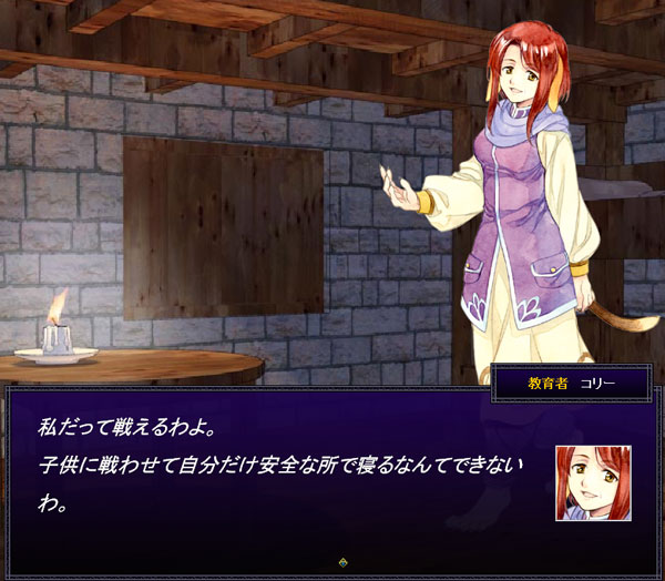 コリーの話とは自分を軍に入れて欲しいというもの。うーむ、人材ユニットが増えるのは嬉しい。しかし、怪物や世界で一番恐ろしい種族『人間』が闊歩する戦場へ一般人を連れて行くのはマズい。