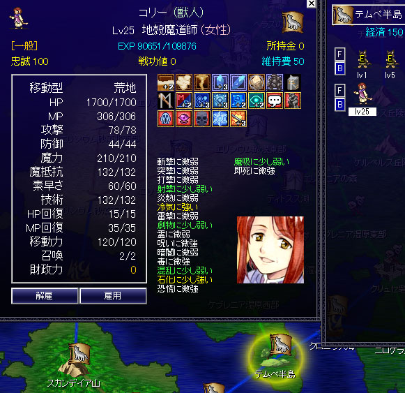 コリーはレベルが高いから上位ユニットを雇用できます。金は2000もかかるがレベル20のユニットを即加入させられるのだ。心強い人材が加わってくれたなあ。